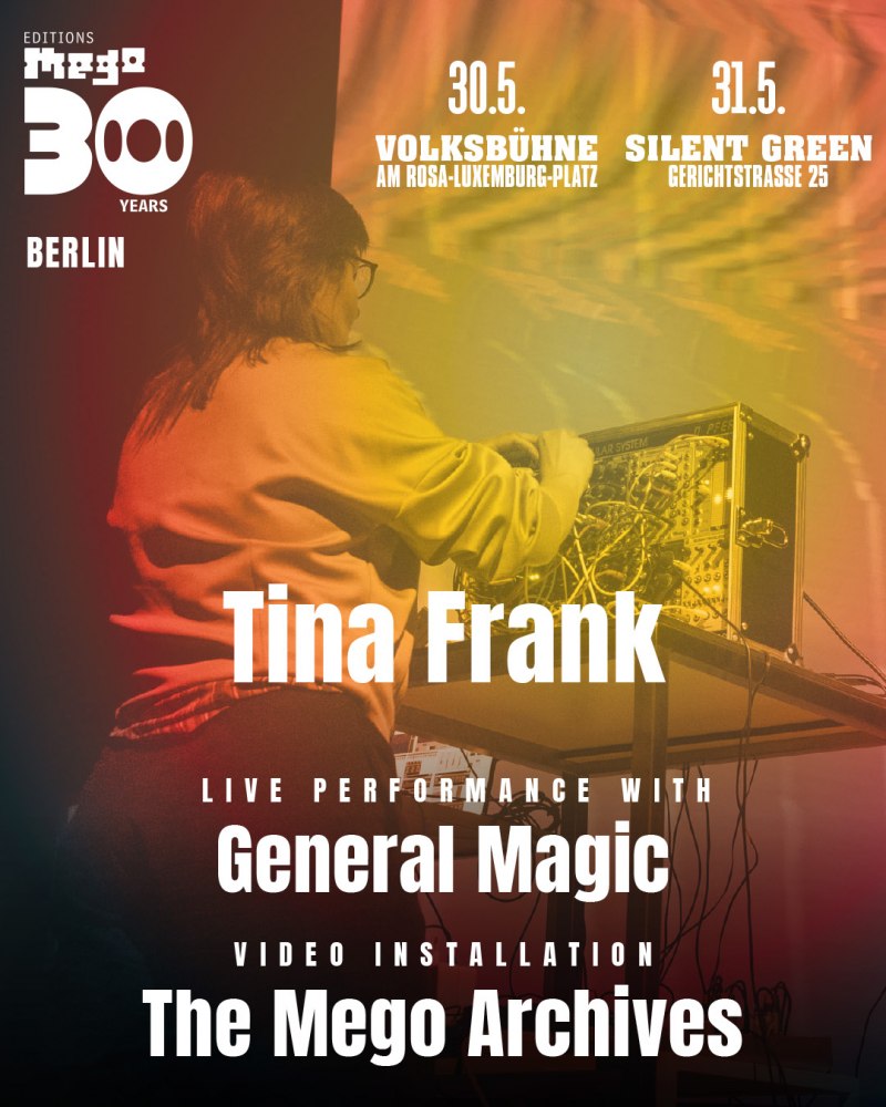 TINA FRANK – Live performance 30 Jahre Editions Mego Drei Jahrzehnte wegweisender Klangforschung und ästhetischer Radikalität: Das Jubiläum von Editions Mego wird am 30. und 31. Mai 2025 in der …